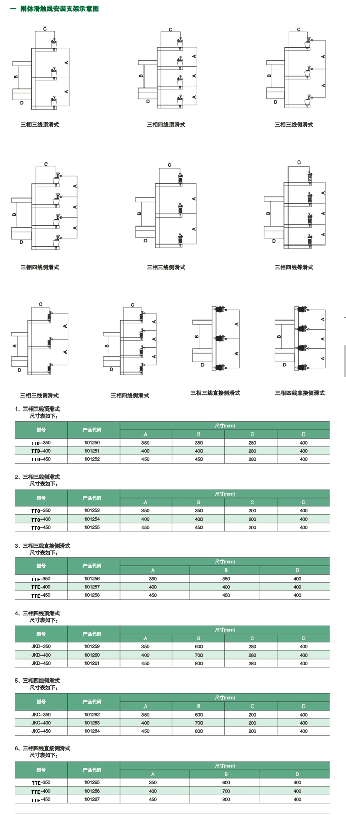 1.三相三线顶滑式 2.三相三线侧滑式 3.三相三线直接侧滑式 4.三相四线顶滑式 5.三相四线侧滑式 6.三相四线直接侧滑式